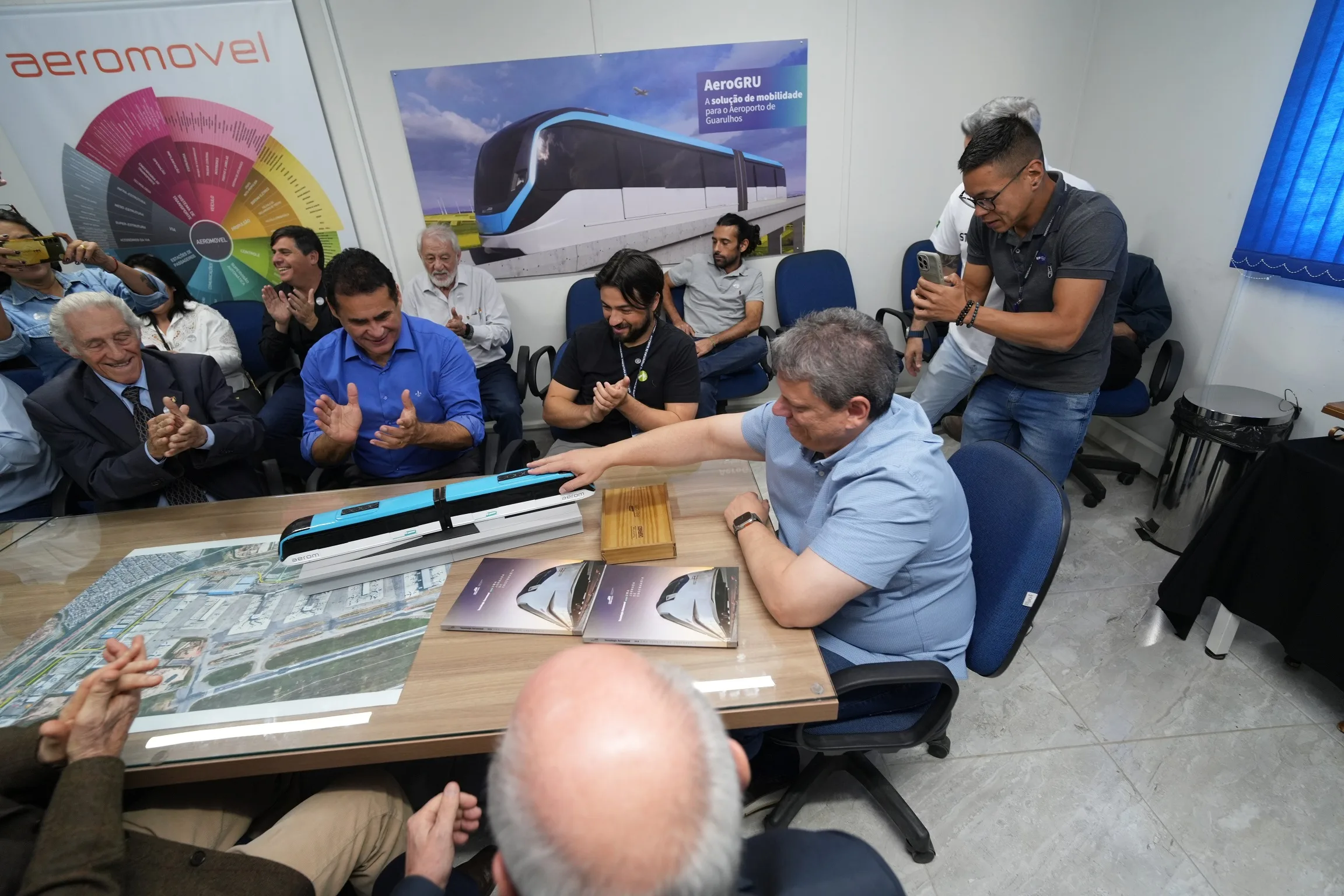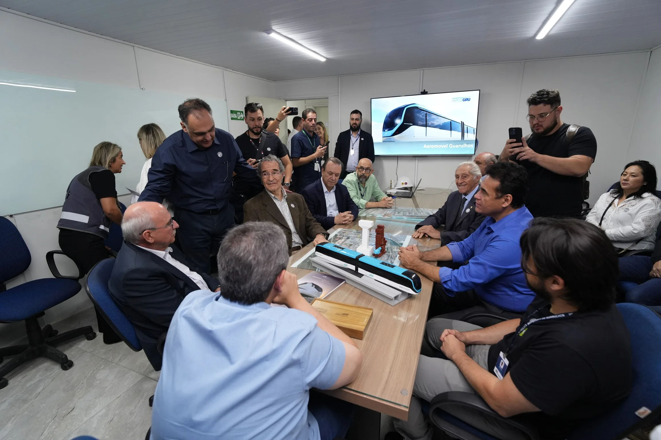 A visita contou também com a presença do Prefeito de Guarulhos, Guti Costa, do Deputado Estadual Jorge Wilson, e de membros do Instituto de Engenharia. Todos foram recepcionados pela equipe de engenharia da Aerom e pelos membros do consórcio AeroGRU, responsável pelo empreendimento que conectará a última estação da Linha Jade da CPTM diretamente aos terminais do aeroporto.