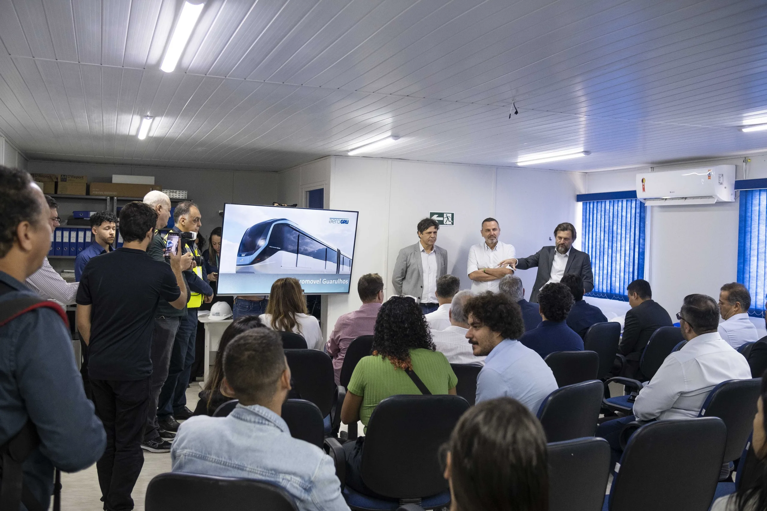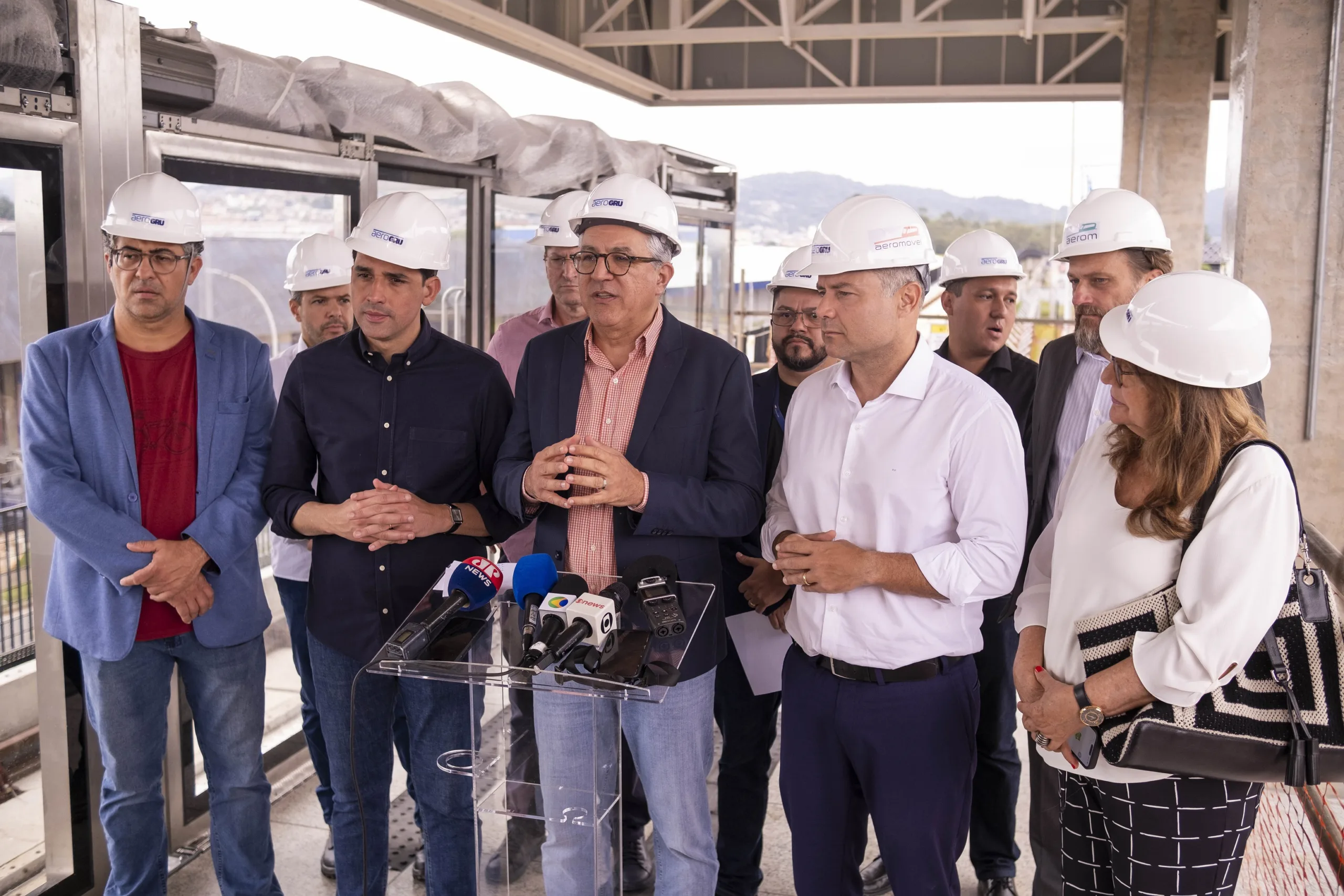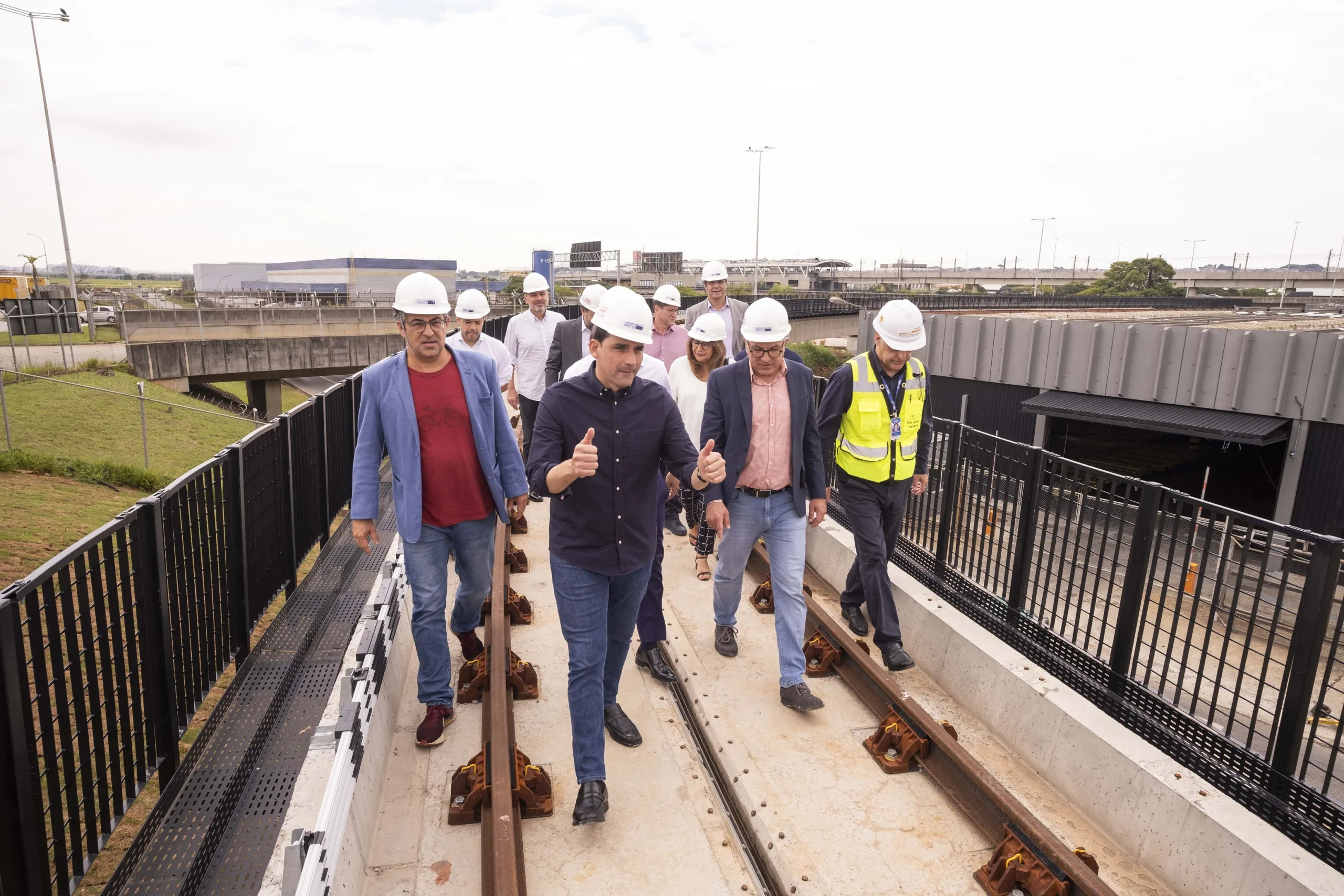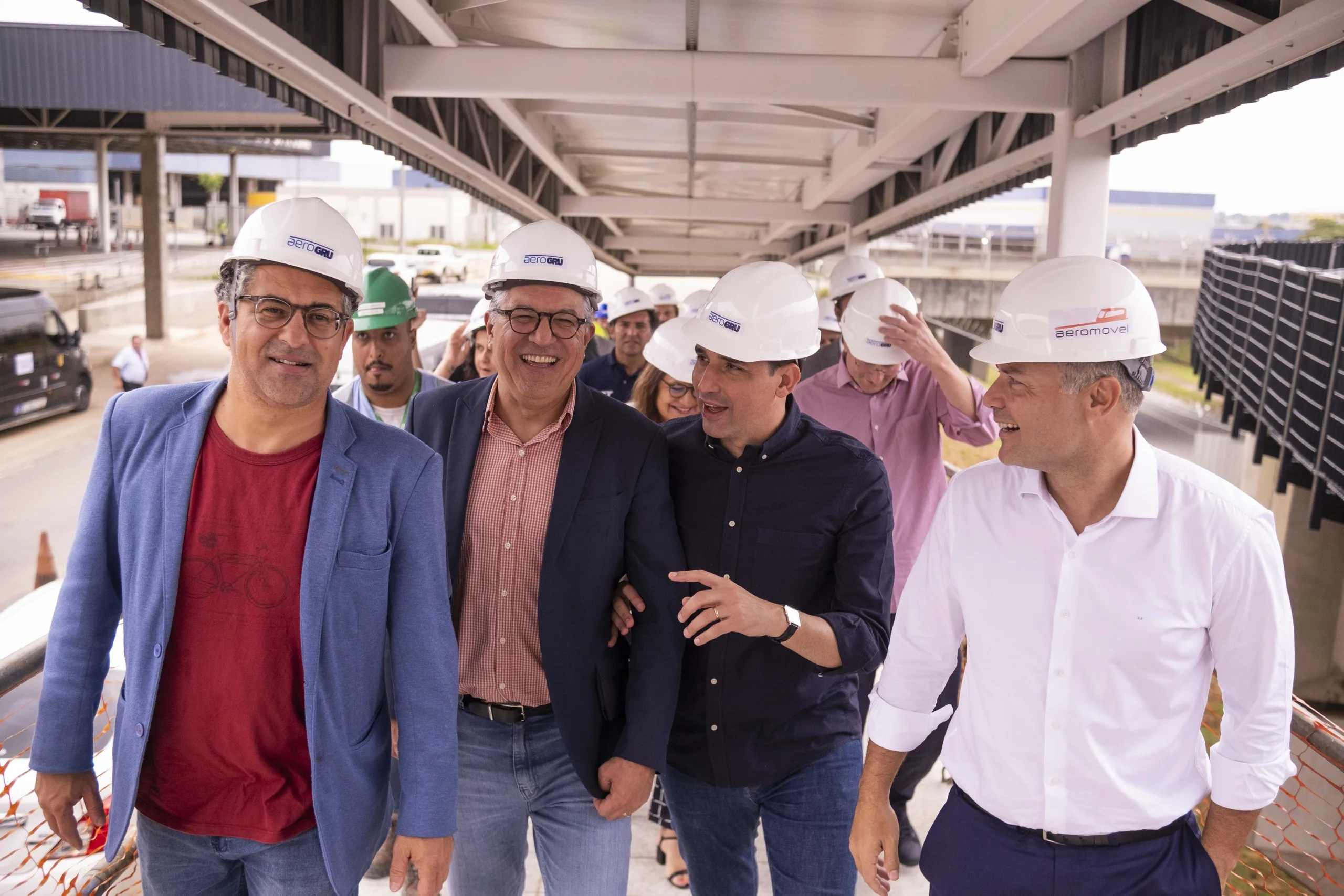 Neste sábado (3), os ministros de Portos e Aeroportos, Silvio Costa Filho, o ministro-chefe da Secretaria de Relações Institucionais (SRI), Alexandre Padilha, e o ministro de Transportes, Renan Filho, realizaram uma visita ao canteiro de obras do consórcio Aerogru, onde está sendo implantado o sistema Aeromovel. Este sistema conectará os terminais do Aeroporto Internacional de Guarulhos à malha ferroviária da CPTM (Companhia de Trens Metropolitanos).